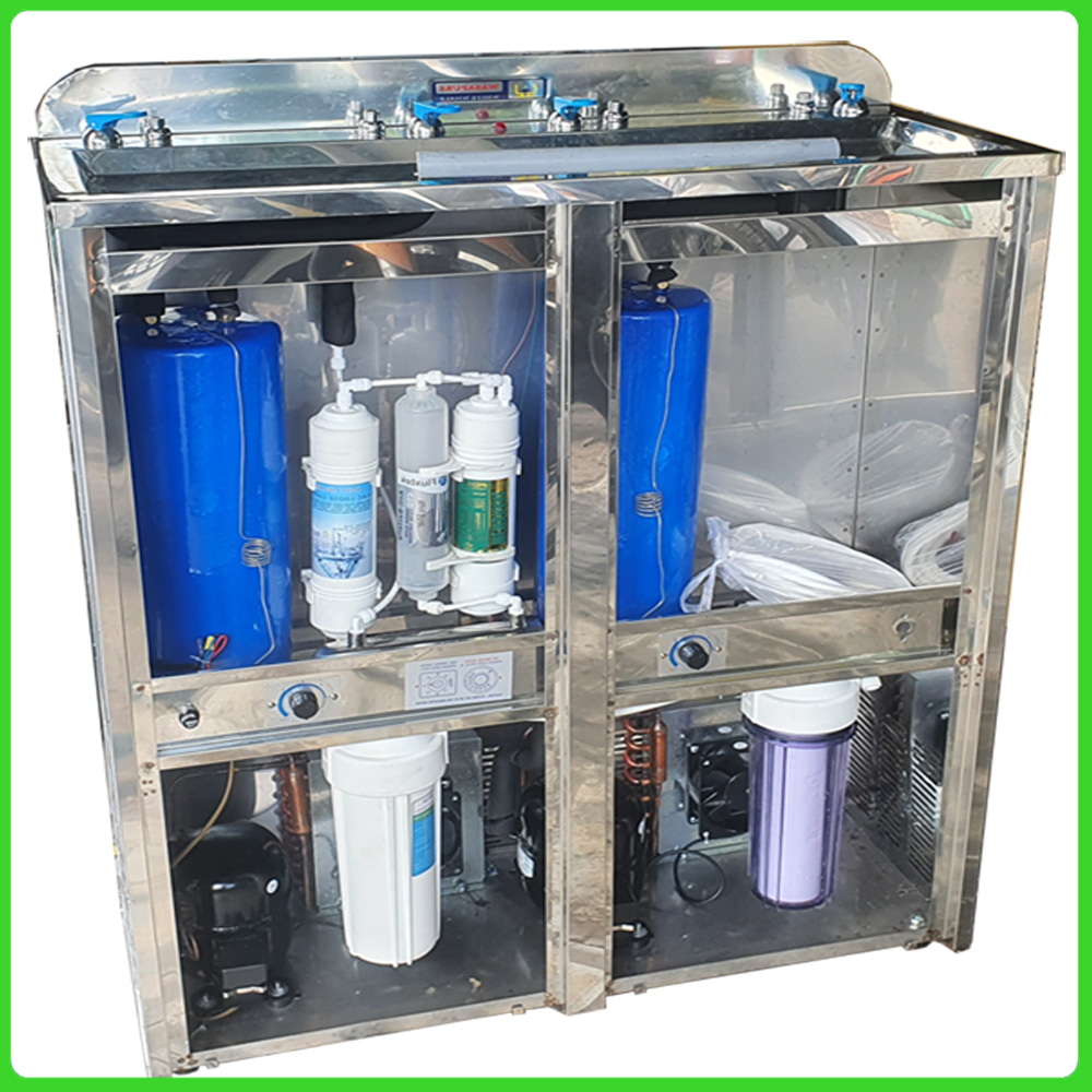 Máy được tích hợp hệ thống lọc RO nhiều cấp giúp loại bỏ hoàn toàn tạp chất, vi khuẩn, kim loại nặng trong nguồn nước.